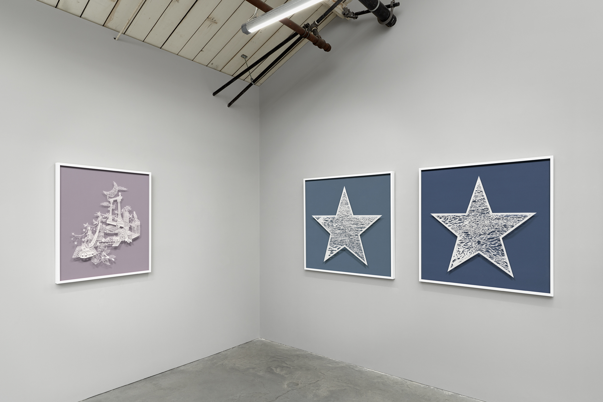 based artist Bovey Lee. Comprised of intricately hand cut Chinese rice paper, these works are a thematic follow up to Lee’s 2017 exhibition The Sea Will Come to Kiss Me, a site-specific installation engendered in response to the contentious rhetoric of the 2016 presidential election which mirrored Lee’s unease as an immigrant, woman, and person of color.